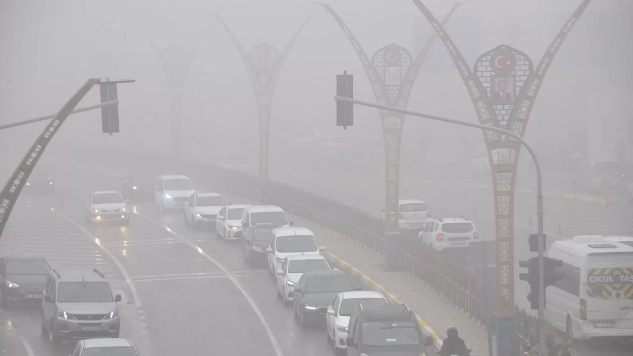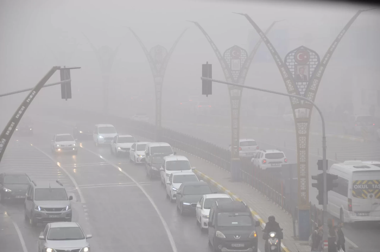 Yoğun sis nedeniyle sürücüler trafikte sis lambalarını yakarak ilerliyor.