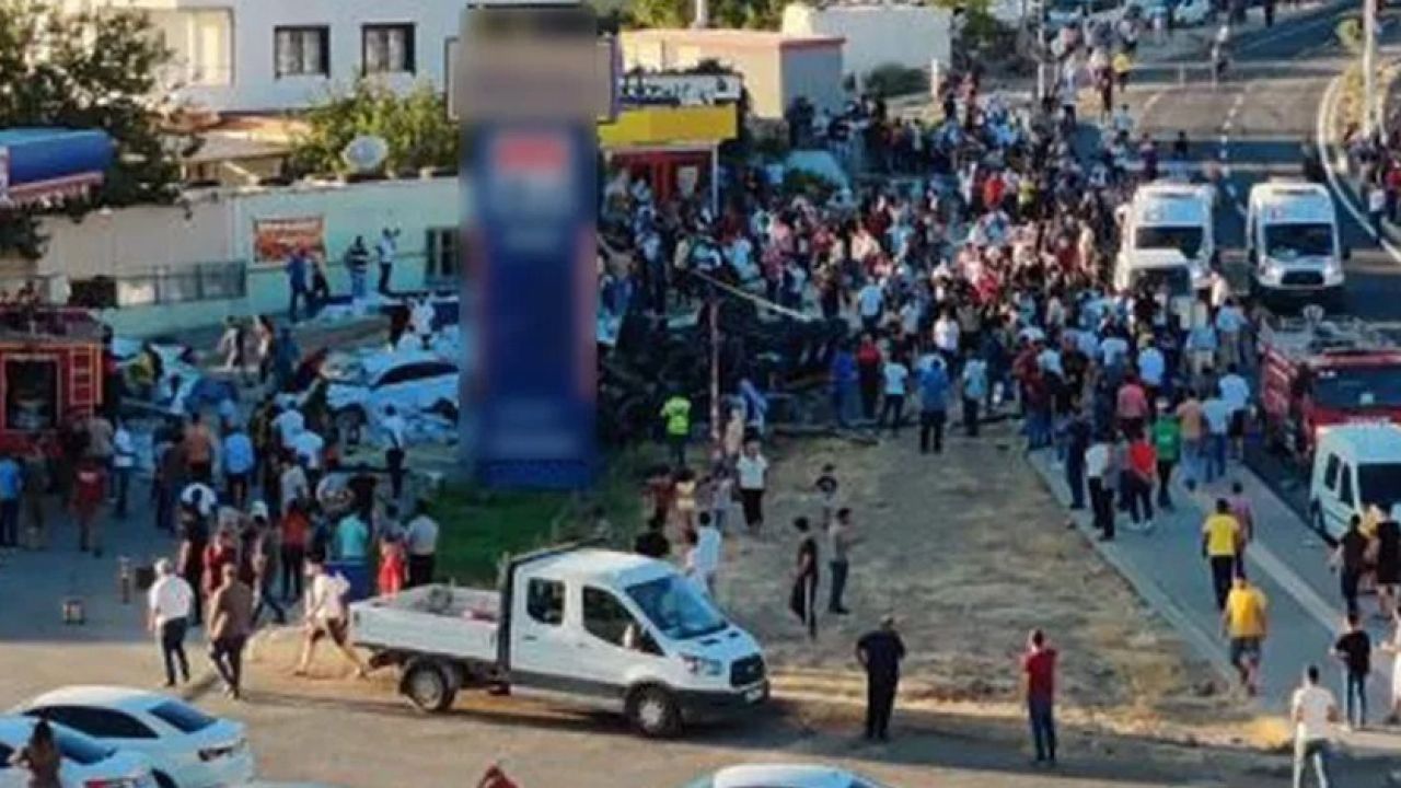 Gaziantep'te 16 kişinin can verdiği, 21 kişinin de yaralandığı katliam gibi kazanın bir benzeri Mardin'in Derik ilçesinde meydana geldi. İlçede akaryakıt istasyonu yakınında meydana gelen kazada freni boşalan tır önündeki 2 araca çarptıktan sonra takla attı.