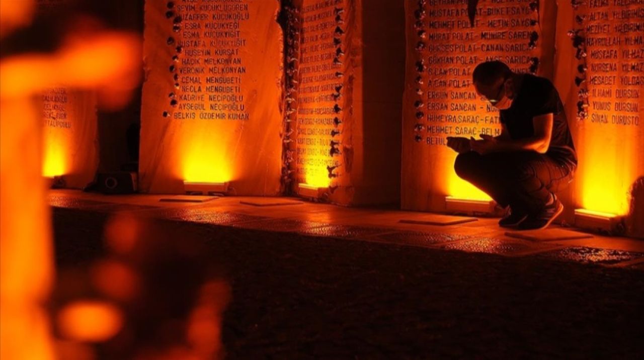 Açıklamanın ardından park içerisindeki ışıklar söndürülerek, depremde hayatını kaybedenler için 1 dakikalık saygı duruşunda bulunuldu.