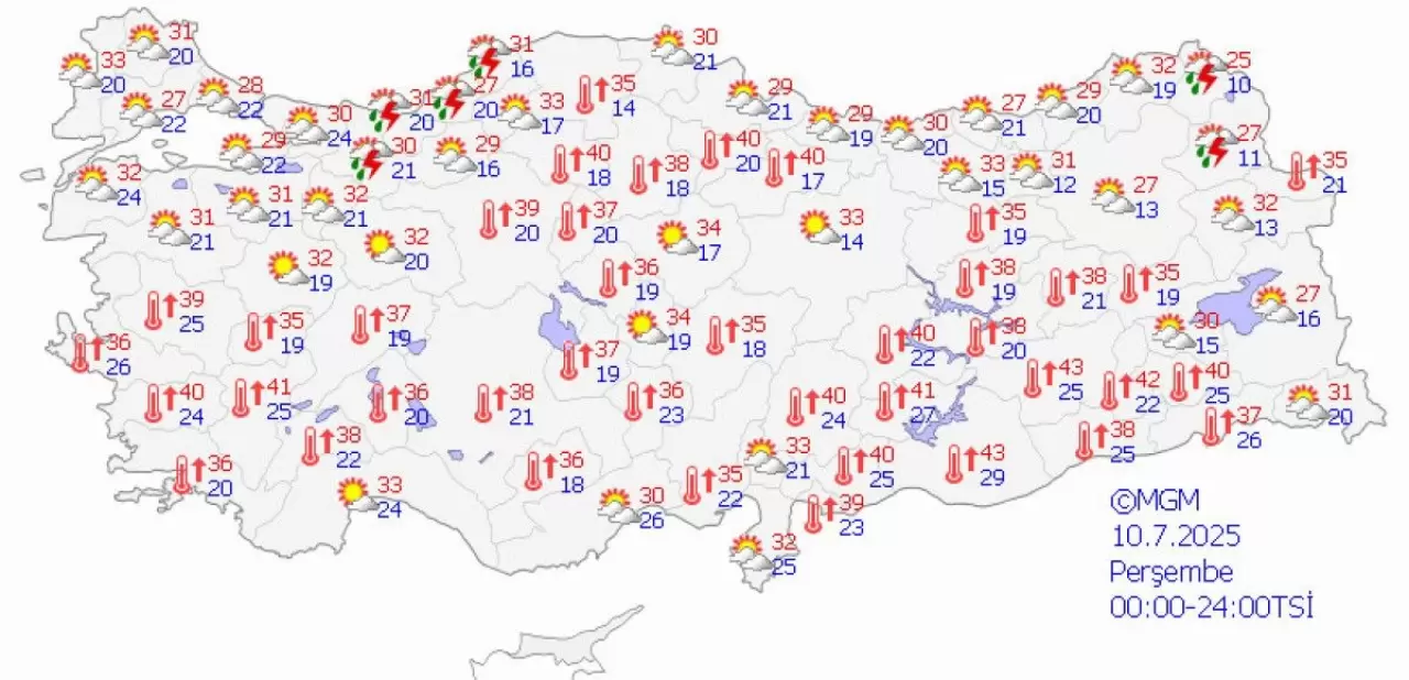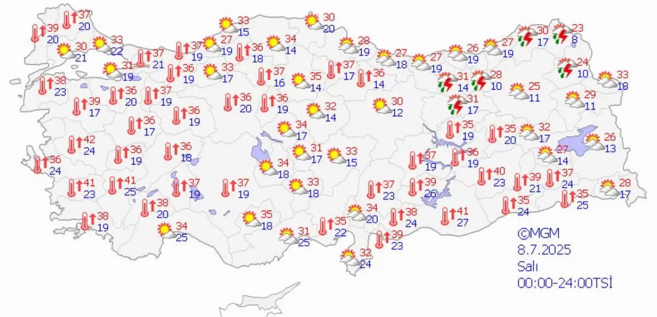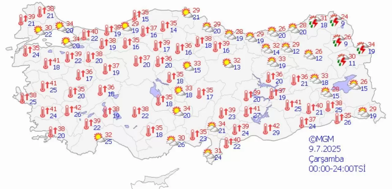 Aynı şekilde Edirne 39, Manisa 42 ve Diyarbakır 40 derecelere kadar çıkacak.