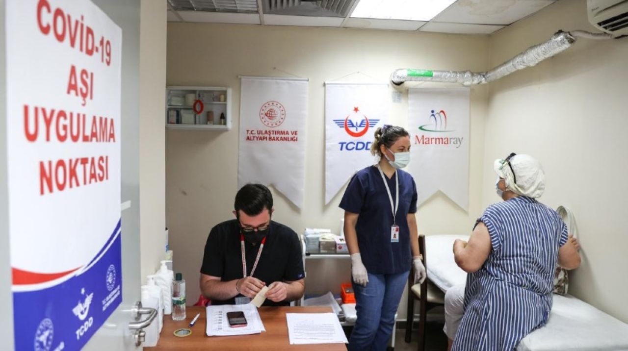 Sağlık Bakanlığı ve TCDD iş birliğiyle Yenikapı Marmaray İstasyonu'nda oluşturulan merkezde, randevu almadan COVID-19 aşı uygulamasına başlandı.