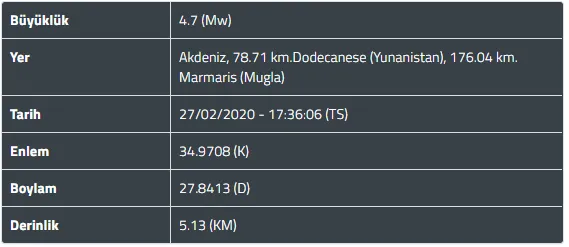 Gün içinde saat 15.20 sularında bir deprem daha meydana gelmişti. Marmaris açıklarında meydana gelen depremin ayrıntıları belli oldu.