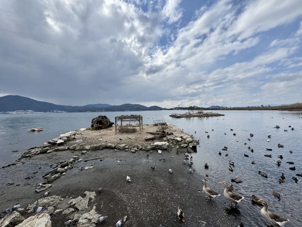 Fethiye'de de körfezde deniz suyunda yaklaşık 2 metre çekilme görüldü. Kıyıya yakın yapay Ördek Adası'nda suyun çekilmesiyle karayla bağlantı oluştu.