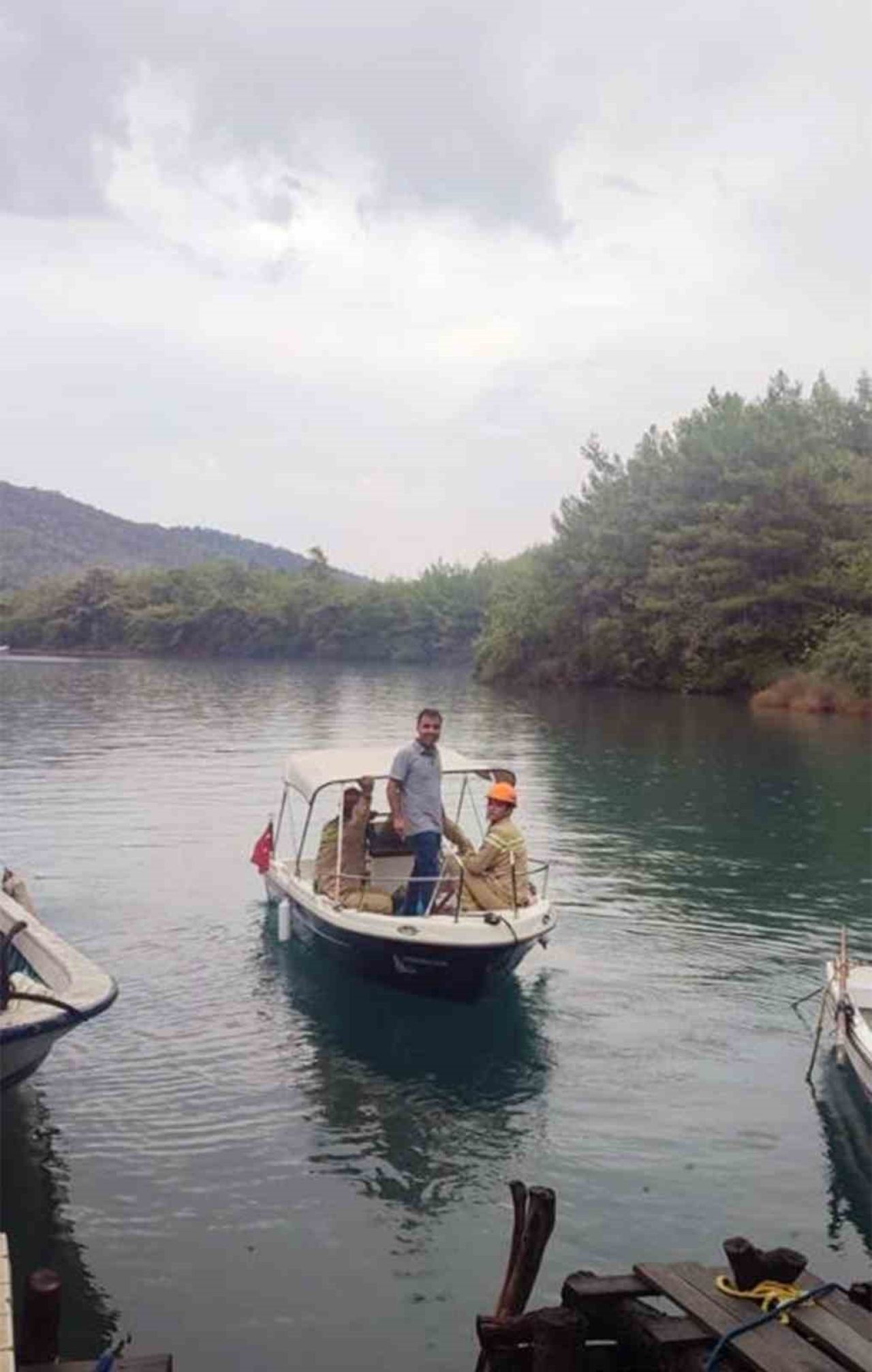 Yangın sonrası yanan sahada soğutma çalışması yapılıyor. Soğutma çalışması için ulaşımın olmaması nedeniyle Marmaris Orman İşletme Müdürlüğü ekipleri teknelerde en yakın alanda inerek soğutma çalışmalarına katılıyor.