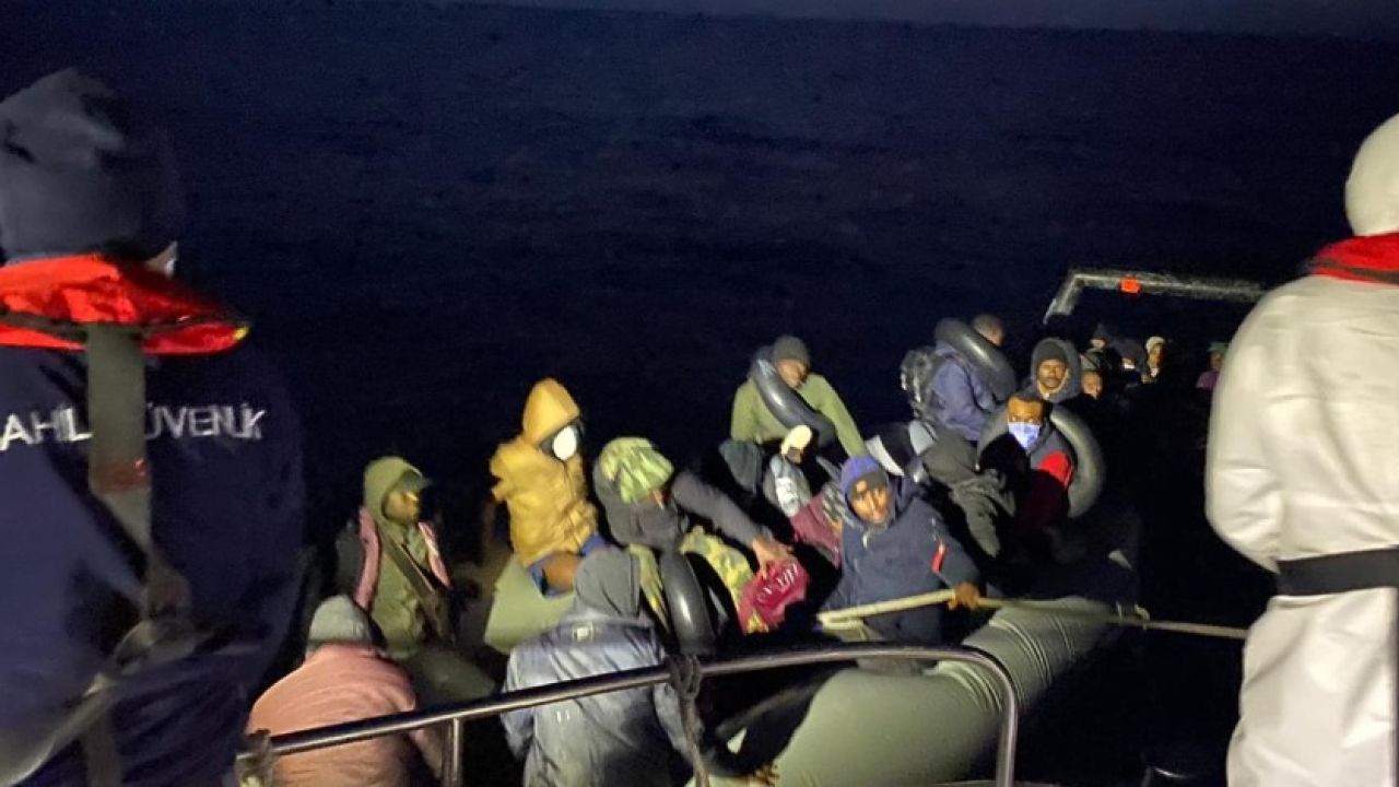 Ekipler, Yunanistan unsurlarınca Türk kara sularına itilen 34 yabancı uyrukluyu sahil güvenlik botuna aldı.