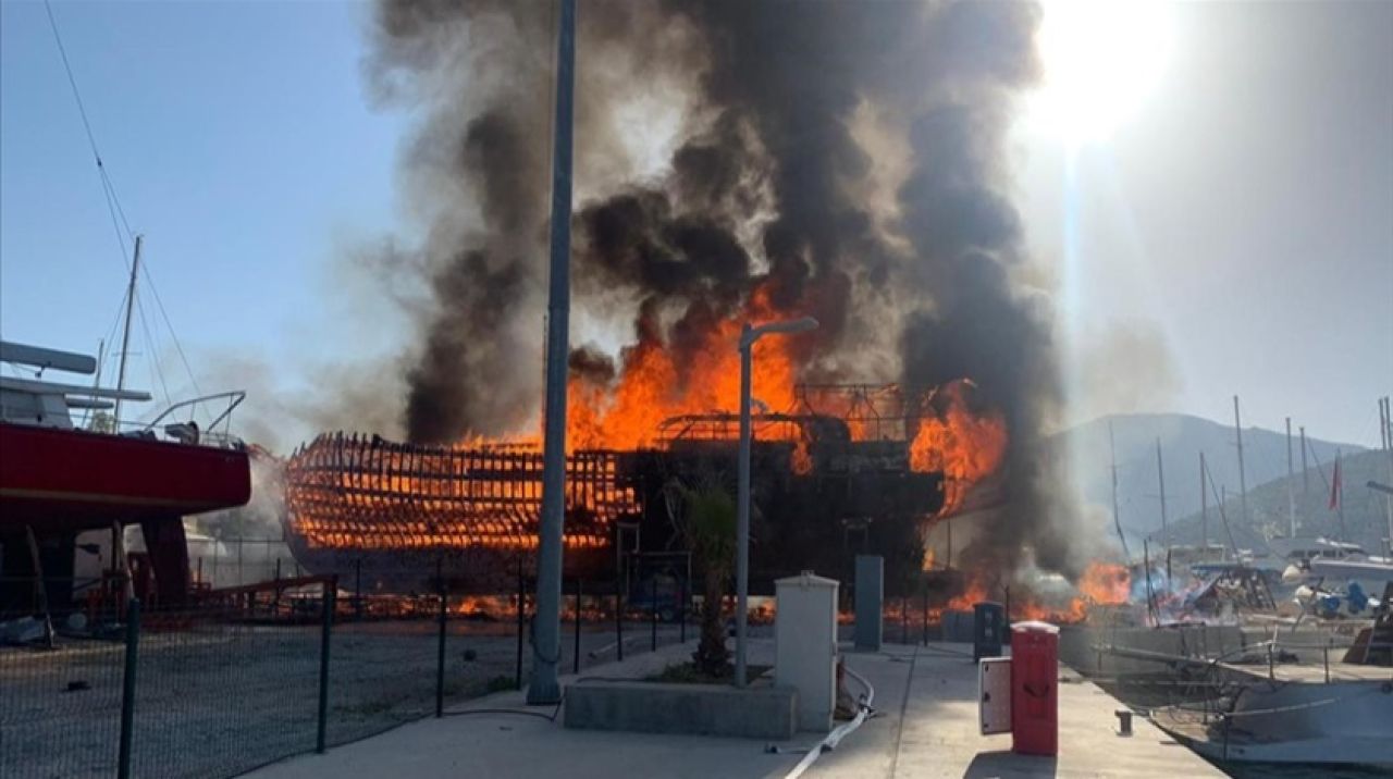 Bozburun Mahallesi'nde bir çekek yerindeki 35 metrelik bir yatta henüz belirlenemeyen nedenle yangın çıktı. Kısa sürede yayılan alevler yakındaki diğer 3 yata da sıçradı.