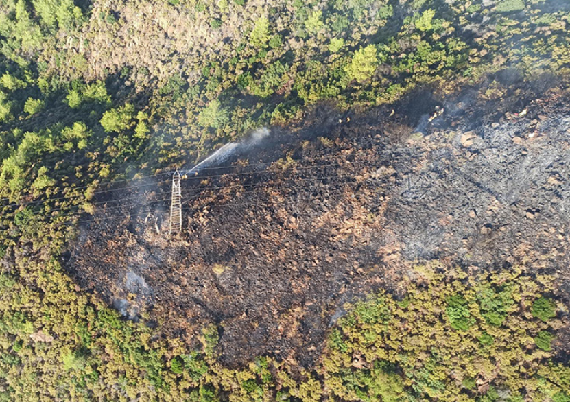 Merkez Sarıana bölgesi televizyon vericileri ile atık su arıtma tesisi arasında kalan ormanlık alanda ilk belirlemelere göre enerji nakil hattında tel kopması sebebiyle yangın çıktı.