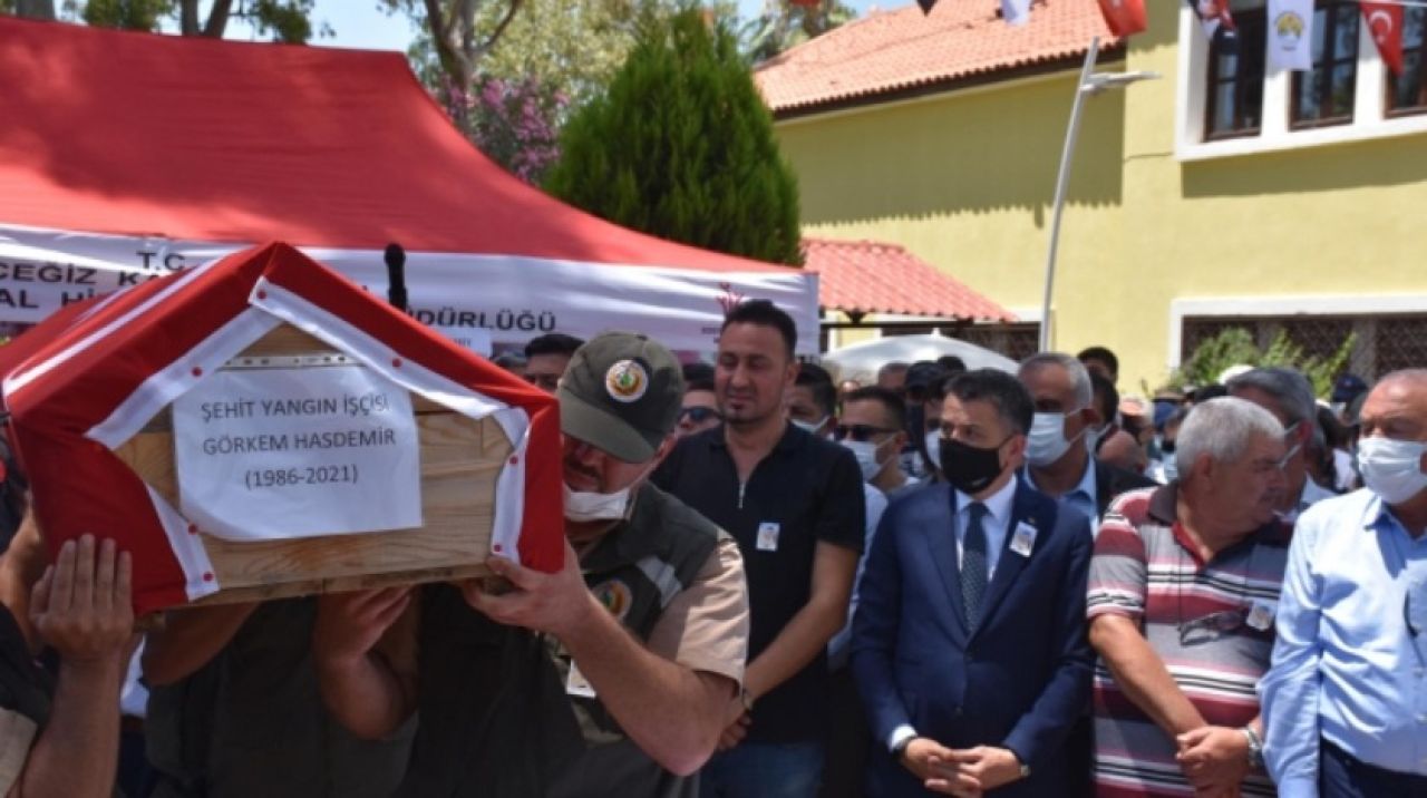 Muğla'nın Marmaris ilçesindeki orman yangınına müdahale ederken şehit olan Görkem Hasdemir için Muğla'nın Köyceğiz ilçesinde tören düzenlendi.