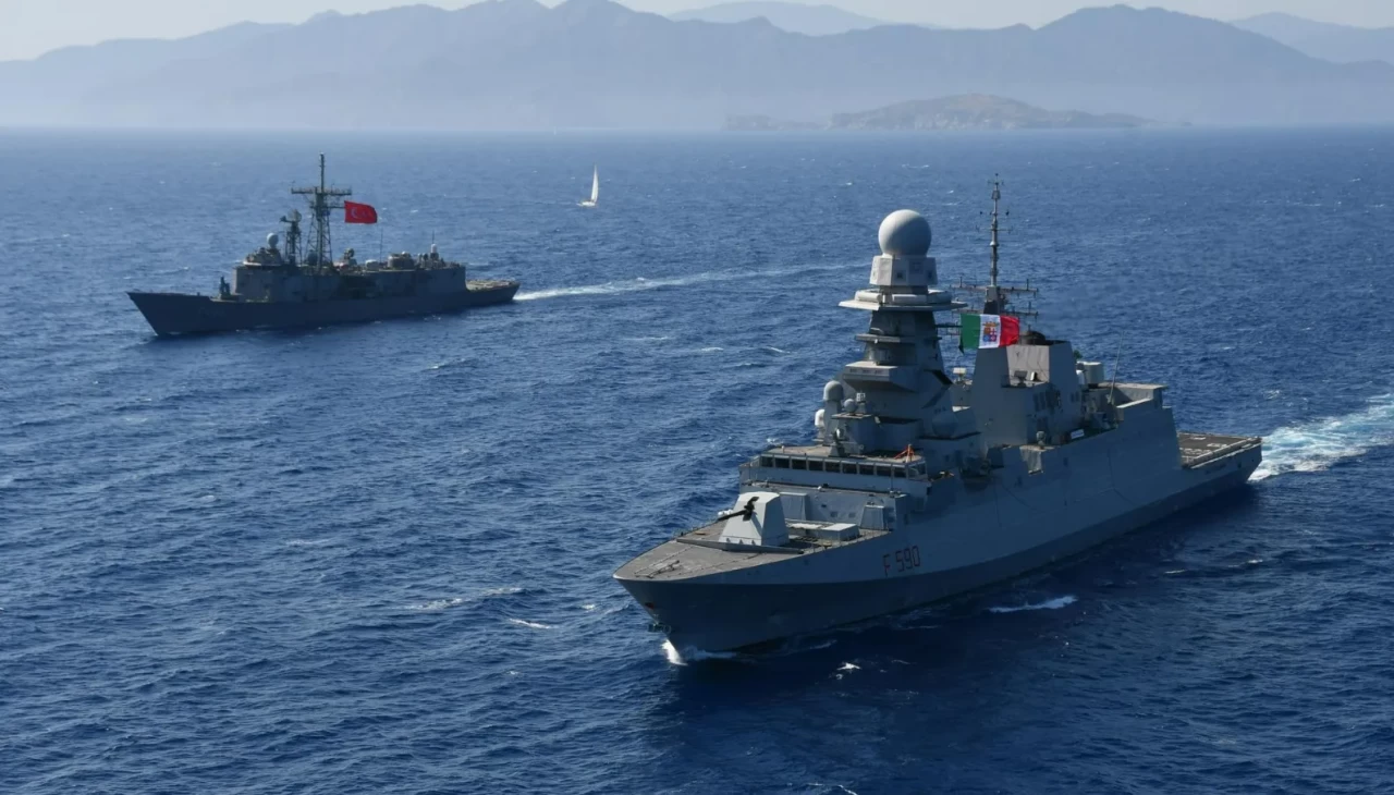 Mavi Vatan’ın yüzen kalesi TCG Gelibolu fırkateyni, NATO Daimi Deniz Görev Grubu görevi kapsamında, İtalya Deniz Kuvvetleri unsuru ITS Bergamini ile eğitimler icra etti. Yapılan eğitim icrasının fotoğrafları havadan görüntülendi.