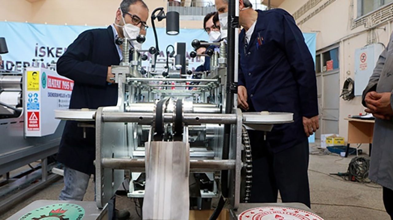 Milli Eğitim Bakan Yardımcısı Mahmut Özer, Covid-19 ile mücadele sürecinde meslek liselerinin üretim kapasitesini harekete geçirdiklerini hatırlatarak, tüm alanlarda yoğun üretim yaptıklarını belirtti. AR-GE merkezlerinde de birçok ürün geliştirdiklerini anlatan Özer, "Bir sevindirici haber de Hataydan geldi. Hatay İl Milli Eğitim Müdürümüzün koordinasyonunda çalışmalar başarı ile tamamlandı ve İskenderun Mesleki Teknik Anadolu Lisesinde hem cerrahi maske makinesi hem de N95 standardında maske üreten maske makinesi üretildi. Üretilen her iki makinenin tamamının tasarım ve üretimi İskenderun Mesleki Teknik Anadolu Lisesinde gerçekleştirildi. Bu süreçte ihtiyaç duyulan makineleri mesleki eğitim olarak üretebilmek ve hizmete sunabilmekten büyük mutluluk duyuyoruz" dedi.