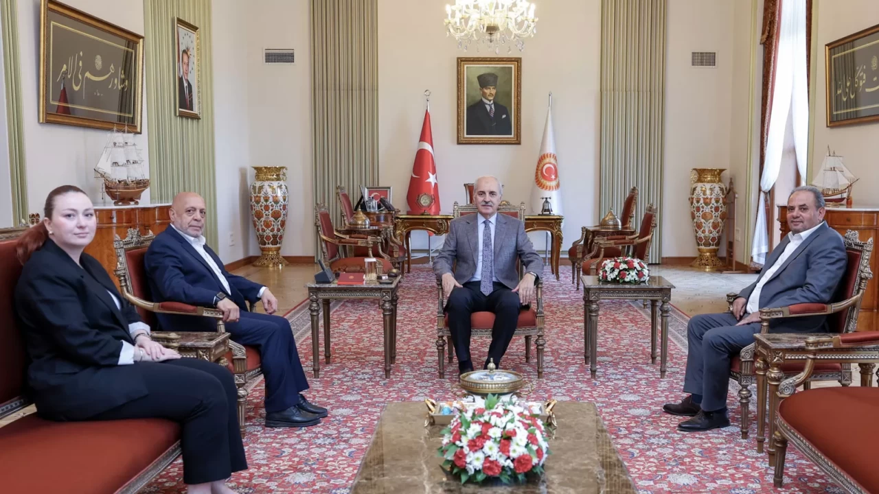 TBMM Başkanı Numan Kurtulmuş, HAK-İŞ Genel Başkanı Mahmut Arslan’ı makamında ağırladı.