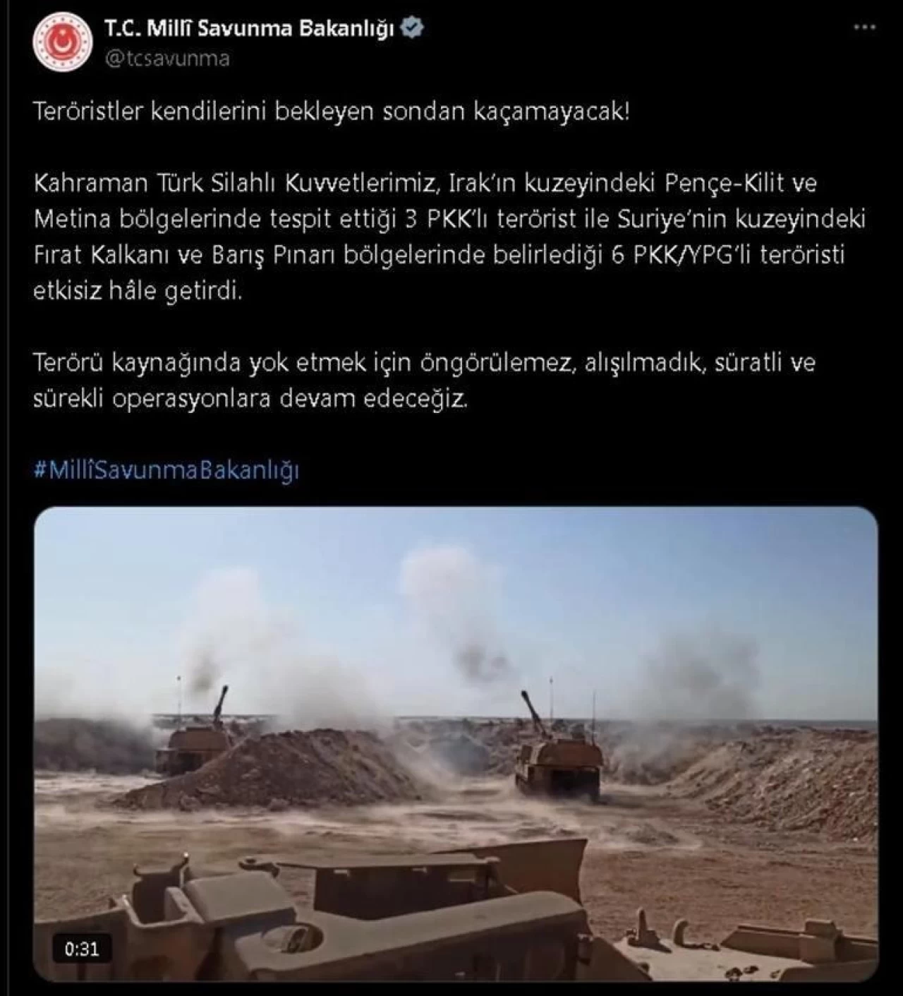 Milli Savunma Bakanlığı tarafından yapılan açıklamada, “Kahraman Mehmetçiklerimiz, Pençe-Kilit Operasyonu bölgesinde gerçekleştirilen arama tarama faaliyetlerinde teröristlere ait bir mağara tespit etti. Mağarada çok sayıda silah ve mühimmat ele geçirildi” bilgisi verildi.