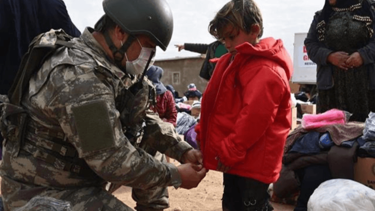 Milli Savunma Bakanlığı, Barış Pınarı bölgesinde görev yapan askerlerin, AFAD koordinatörlüğünde Suriyeli çocuklara gıda ve kışlık kıyafet yardımında bulunduğunu açıkladı.