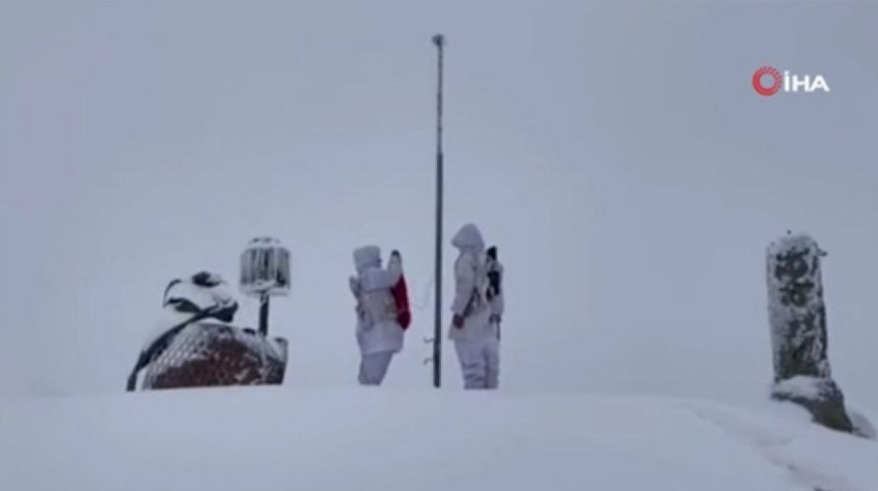 Milli Savunma Bakanlığı, Hakkari Çukurca'da bulunan Stine Üs Bölgesinde görevli personelin zorlu kış şartlarında gerçekleştirdiği bayrak değişiminin görüntülerini paylaştı. Bakanlıktan konuyla ilgili yapılan açıklamada, "Hakkari Çukurca'da bulunan Stine Üs Bölgesi'ndeki kahramanlarımız, bayrak değişiminde" ifadeleri kullanıldı.