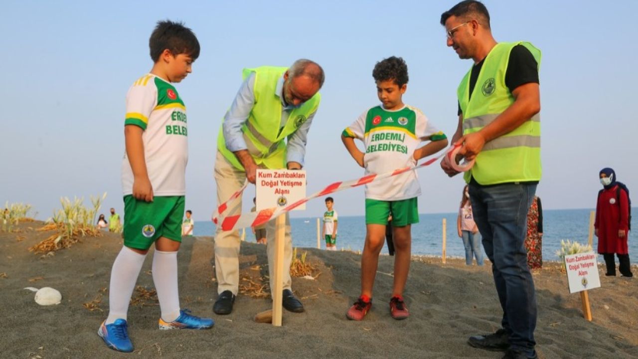 Akdeniz’in incisi Mersin Erdemli’de, öğrenciler Kum Zambaklarını korumak için bir bir yerlerini tespit ettiler, uyarı levhalarını asıp, şerit çektiler. Kum Zambaklarına zarar vermenin cezası 80 bin Türk Lirası olurken, yapılan etkinlikle kum zambaklarının ceza ile değil bilinçle korunması hedefleniyor.