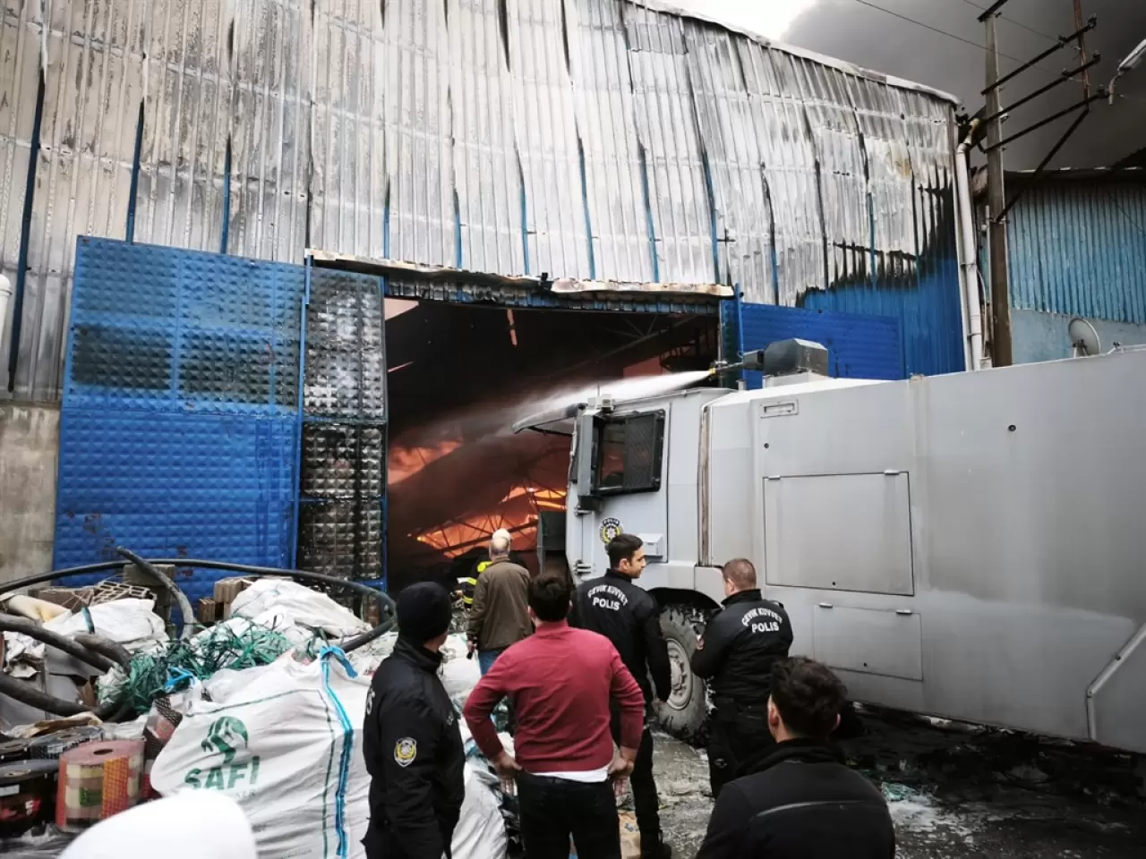 Yalınayak Mahallesi Hurdacılar Sitesi'nde kağıt ve plastik malzemelerin bulunduğu geri dönüşüm fabrikasının deposundan duman yükseldiğini görenler, durumu 112 Acil Çağrı Merkezi'ne bildirdi.