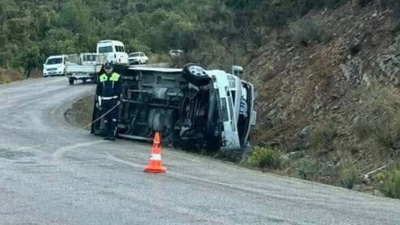 Sürücüsü öğrenilemeyen tarım işçisi taşıyan minibüs, Esenpınar Mahallesi Alıca mevkisinde devrildi.