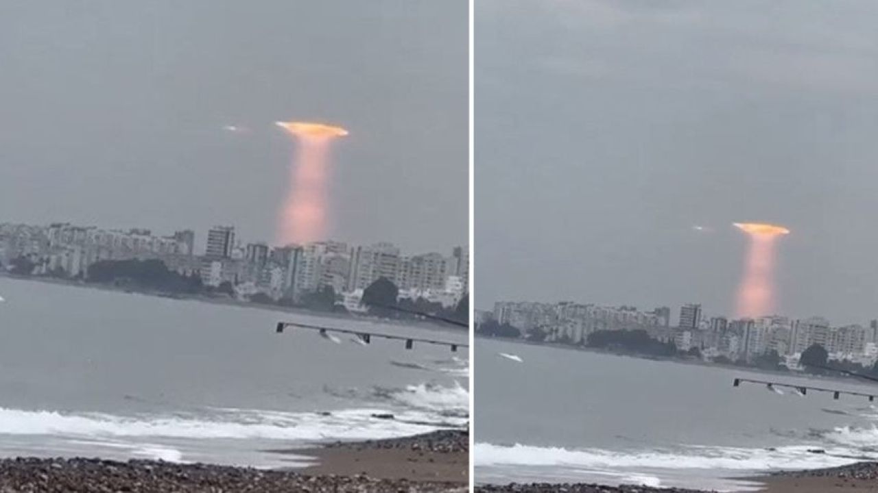 Mersin'de akşam saatlerinde ortaya çıkan ışık huzmesi görenleri şaşkına çevirdi.
