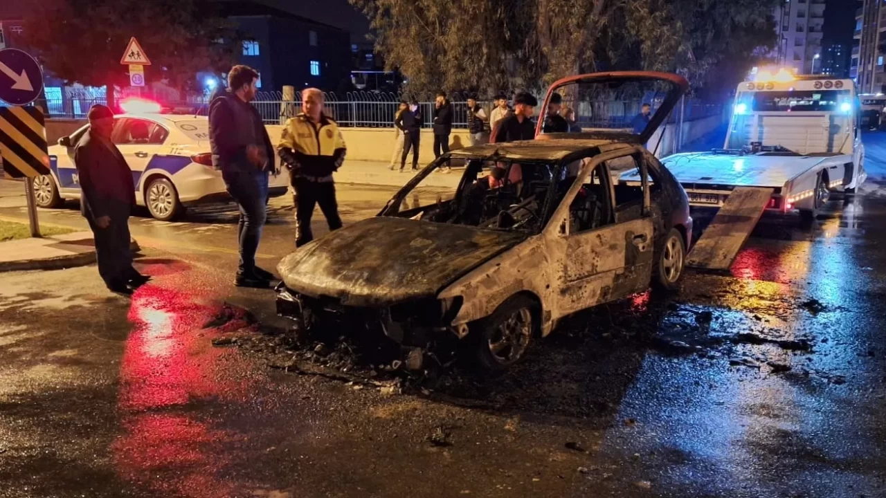 Mersin'de seyir halindeki otomobil alev alev yandı