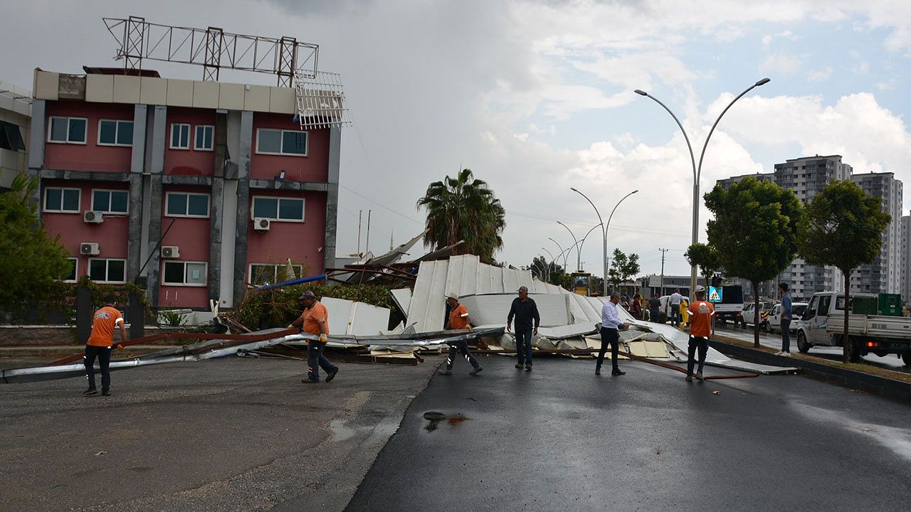Mersin'in Tarsus ilçesinde etkili olan fırtına ve sağanak hayatı olumsuz etkiliyor.
