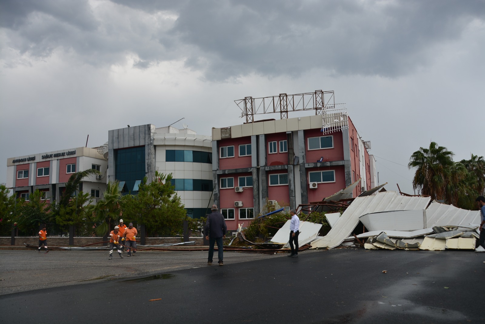 Öte yandan, Kemal Paşa Mahallesi Mimar Sinan Bulvarı'ndaki kullanılmayan özel okulun çatısı da yola uçtu, belediye ekipleri ulaşıma kapanan yolda temizlik çalışması yaptı.