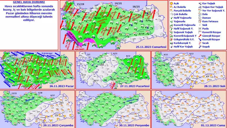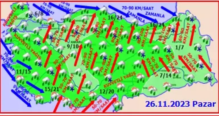 Meteoroloji açıklamasında özellikle fırtınaya değindi. Açıklamada, "Yapılan son değerlendirmeye göre rüzgarın cumartesi sabah saatlerinden itibaren bölgemizin batısından başlamak üzere, zamanla bölge genelinde güneyli yönlerden kuvvetli ve yer yer fırtına (40-70 km/saat) şeklinde eseceği, pazar günü sabah saatlerinden itibaren etkisini arttırarak batı ve kuzeybatı yönlerden kuvvetli fırtına (70-90 km/saat) ve yer yer tam fırtına (100 km/saat ve üzeri) şeklinde eseceği tahmin ediliyor" denildi.
