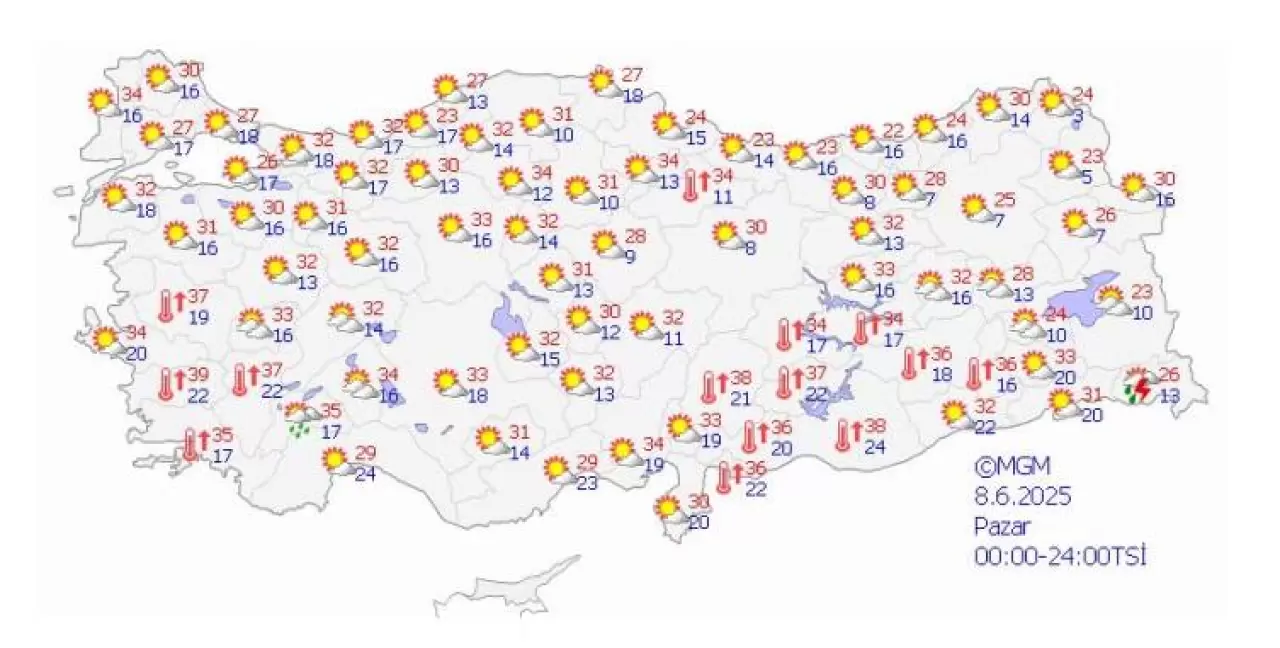 Sıcaklık yurt genelinde mevsim normallerinin üzerinde seyrederken, genellikle kuzeyli, Doğu Akdeniz ve Güneydoğu Anadolu'da güneyli yönlerden hafif, ara sıra orta kuvvette rüzgar beklentisi bulunuyor.
