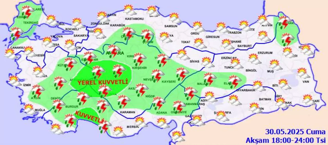 Yağışların, Ege'nin güneydoğusu, Batı Akdeniz, İç Anadolu'nun güneyi ile Edirne, Kırklareli, Tekirdağ, Adana, Ankara ve Çankırı çevrelerinde yerel kuvvetli olması beklendiğinden yaşanabilecek olumsuzluklara karşı dikkatli ve tedbirli olunması gerekmektedir.