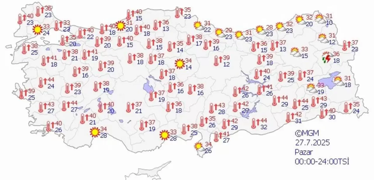 Meteoroloji Genel Müdürlüğü'nün (MGM) son tahminlerine göre geride kalan hafta rekor kıran sıcak hava bugün ve yarın da yurt genelinde etkisini sürdürecek.