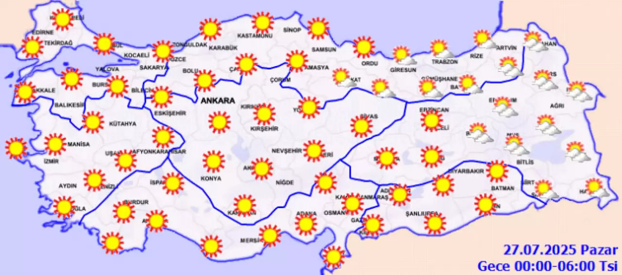 Meteoroloji Genel Müdürlüğü (MGM), ülke genelinde mevsim normallerinin üzerinde seyreden hava sıcaklıklarının daha da artacağını duyurdu. 26 Temmuz-2 Ağustos tarihlerini kapsayan uyarıya göre, Türkiye pazar gününden itibaren yeni ve etkili bir sıcak hava dalgasının altına girecek.