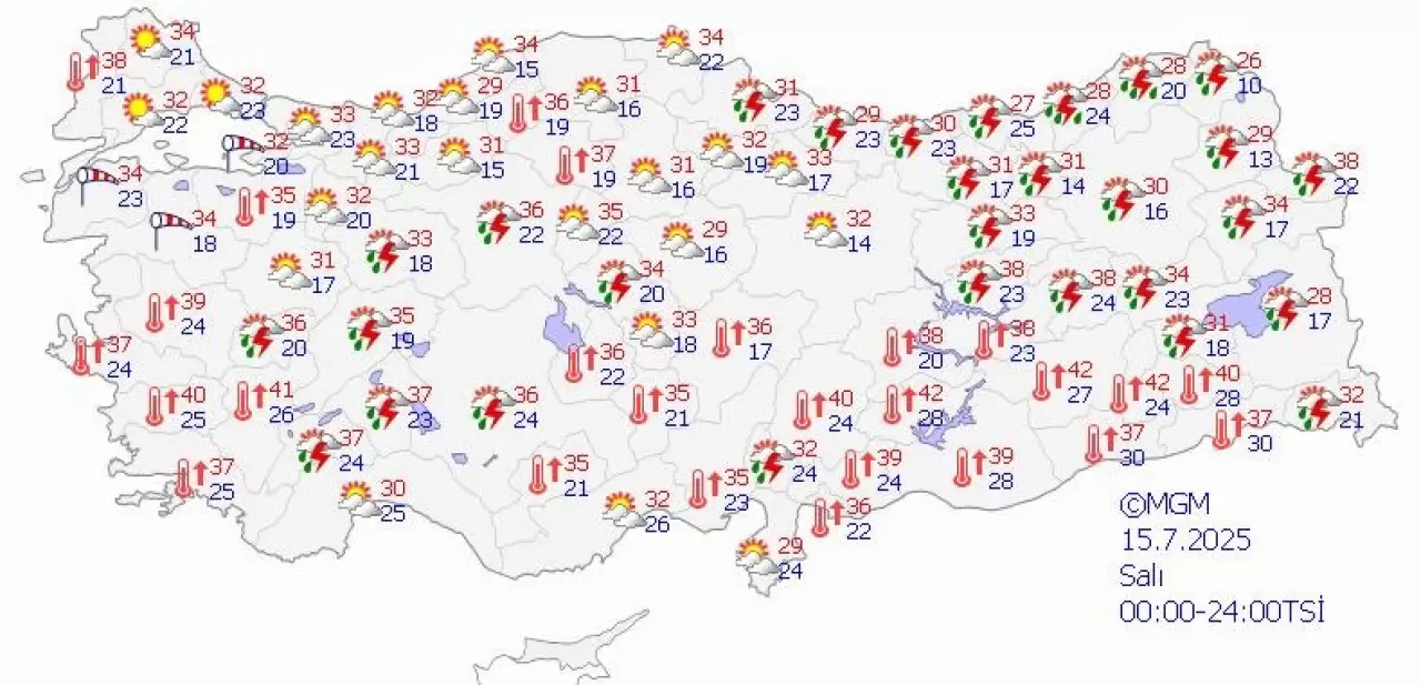 İŞTE 15 TEMMUZ İL İL HAVA DURUMU
