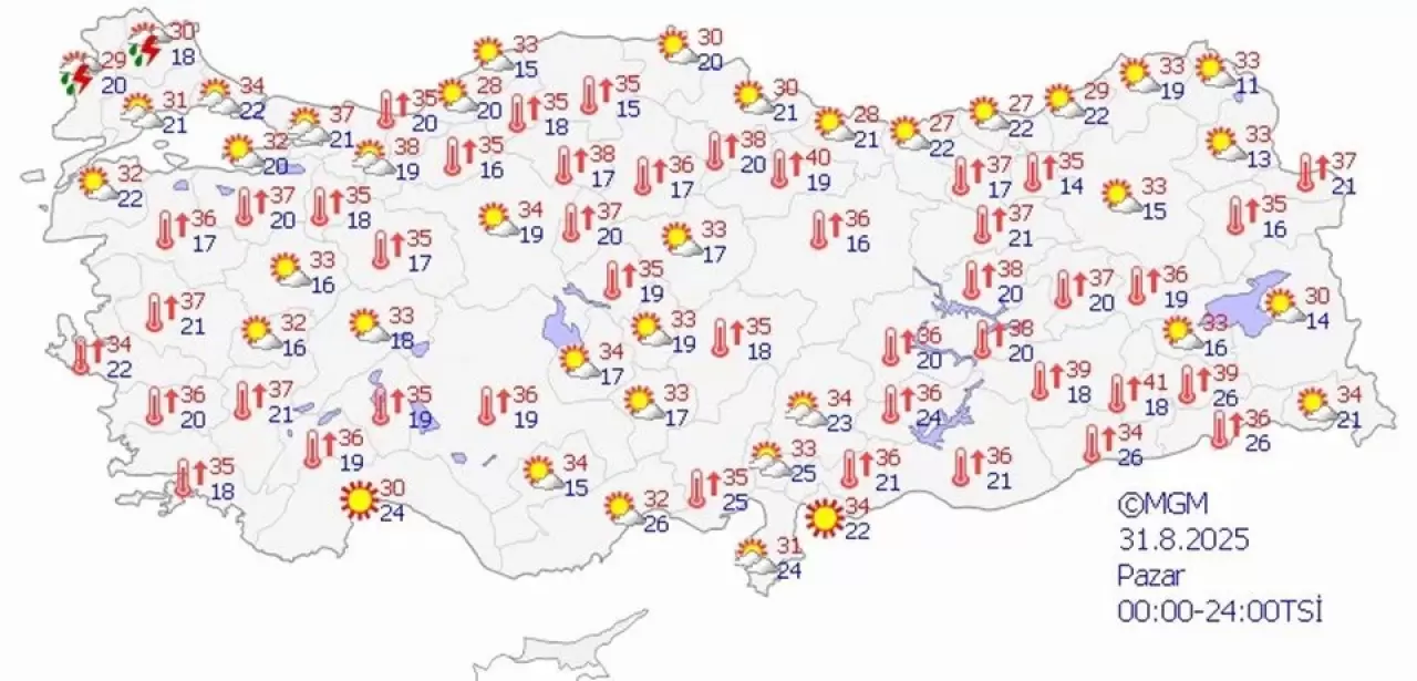Meteoroloji Genel Müdürlüğü'nün (MGM) tahminlerine göre serinlik veren rüzgarlar kesiliyor, yurt genelinde sıcaklıklar mevsim normallerinin üzerine çıkıyor.