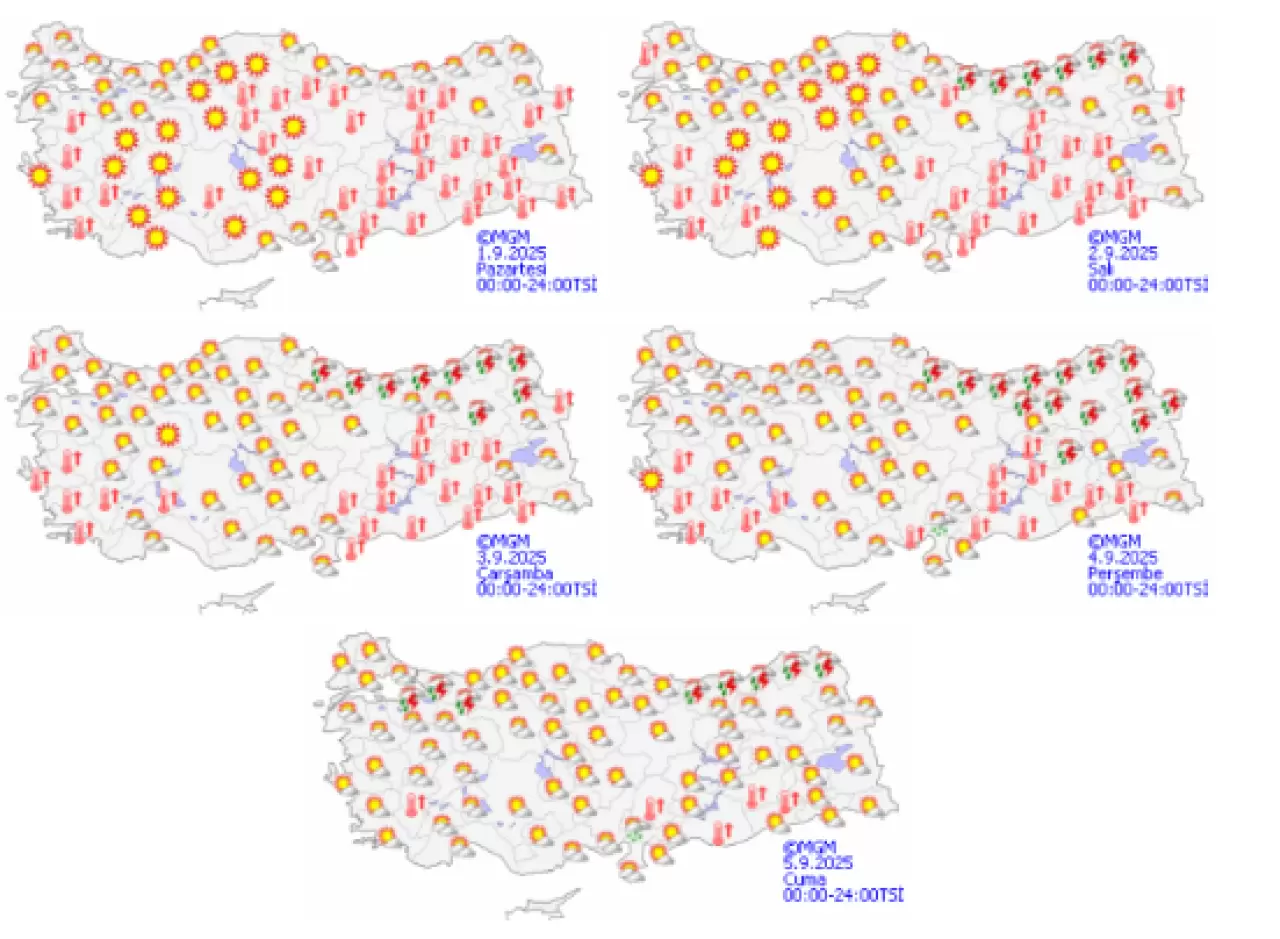 Çarşamba günü ise Samsun, Ordu, Artvin, Kars, Ardahan ve Erzurum'da yerel sağanak ve gök gürültülü sağanak görülecek. Diğer bölgelerde havanın az bulutlu ve açık olması öngörülüyor.