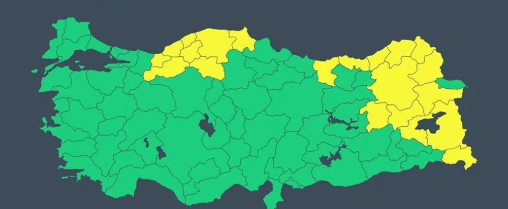 Meteoroloji Genel Müdürlüğü Ağrı, Artvin, Bingöl, Bitlis, Bolu, Çankırı, Erzurum, Giresun, Hakkari, Kars, Kastamonu, Muş, Rize, Sinop, Trabzon, Van, Zonguldak, Bartın, Ardahan, Karabük ve Düzce için sarı kodlu uyarıda bulundu.