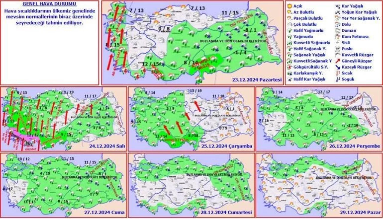 BUZLANMA VE DON UYARISI: Yurdunu doğu kesimlerinde buzlanma ve don olayı beklendiğinden, ulaşımda aksamalar vb. olumsuzluklara karşı dikkatli ve tedbirli olunması gerekmektedir.