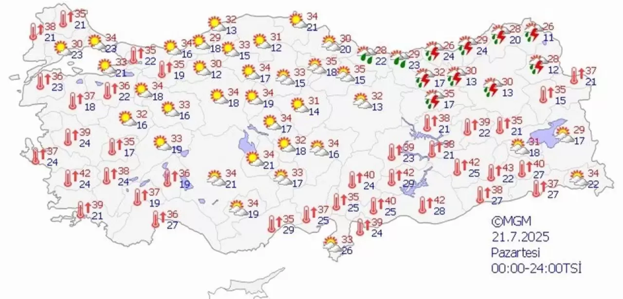 Termometreler bazı şehirlerde gölgede 45 dereceyi gösterecek.