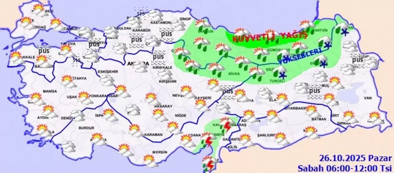 Meteoroloji Genel Müdürlüğü (MGM) Doğu Anadolu’nun kuzeydoğusuna yüksek kesimlerde kar ve karla karışık yağmur; Doğu Karadeniz'de kuvvetli yağış beklendiğini duyurdu.