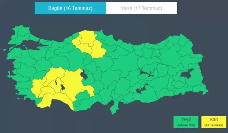 MGM, 10 il için sarı kodlu sağanak yağış uyarısı yaptı. Uyarı yapılan iller şunlar: Afyonkarahisar, Antalya, Burdur, Çankırı, Çorum, Denizli, Isparta, Kastamonu, Konya ve Karabük. Bu bölgelerde yaşayanların dikkatli olması gerekiyor.