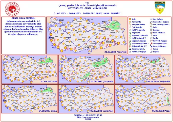 Meteoroloji'nin son dakika uyarısına göre, ağustos ayında kavurucu sıcaklar ülke genelinde etkisini yeniden göstermeye başlayacak.. İşte haritalarla 5 günlük hava durumu tahminleri...
