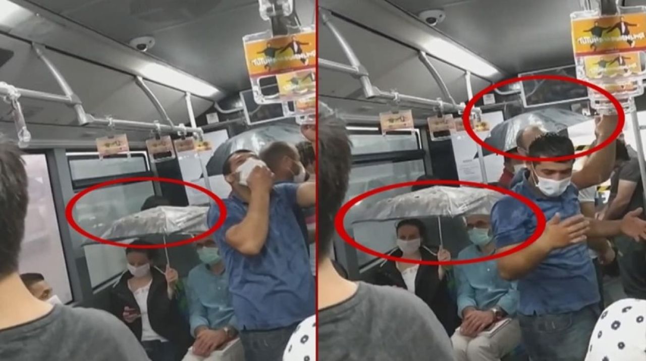 İstanbul'da dün aniden bastıran sağanakta metrobüste ilginç görüntüler oluştu. Metrobüs tavanından damlayan yağmur vatandaşların üzerine aktı. Bazı yolcuların yağmur sularından korunmak içinde şemsiye açtı. Yaşanan bu anlar ise bir başka yolcu tarafından cep telefonu kamerasıyla görüntülendi. Görüntülerde koltukta oturan bir çift ile ayakta yolculuk eden bir başka yolcunun şemsiye açtığı görülüyor.