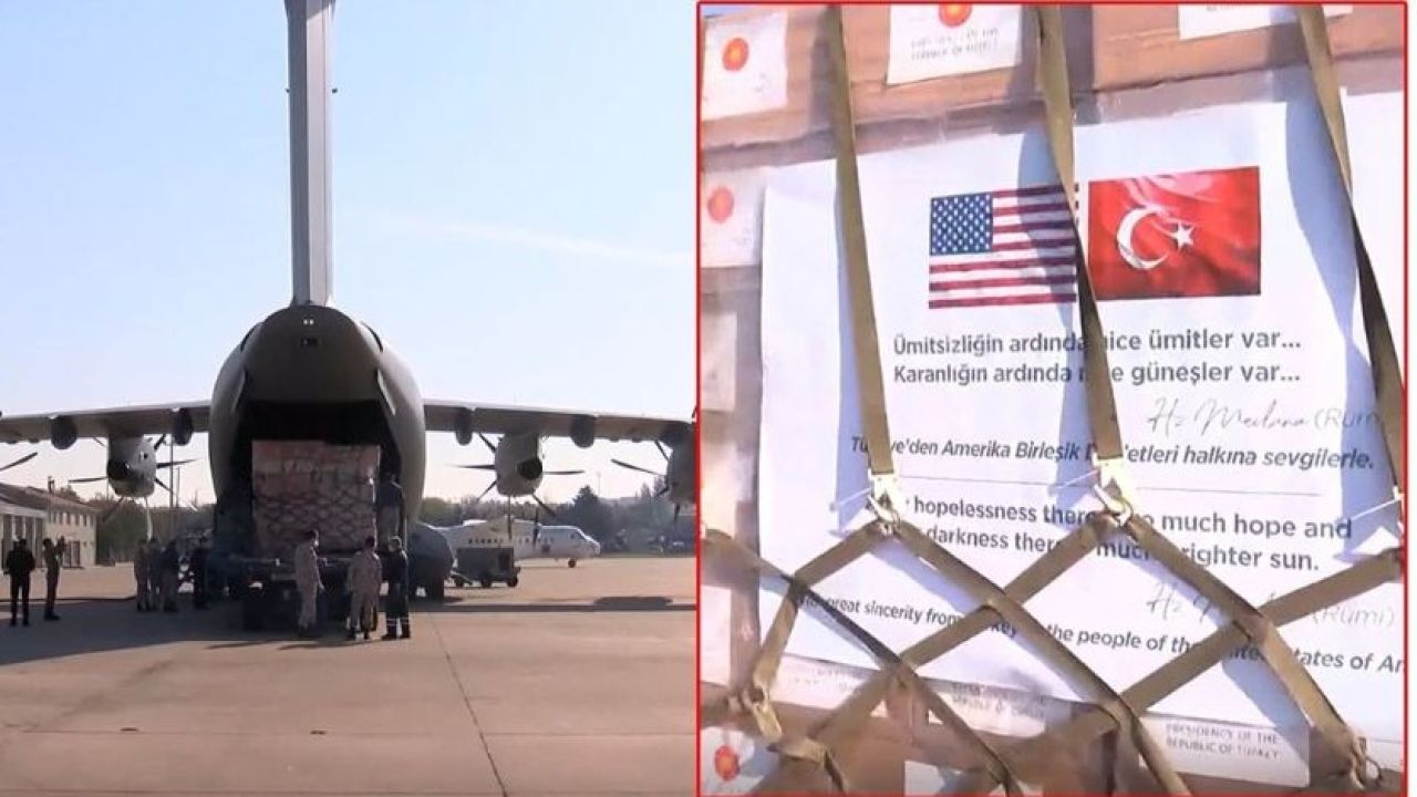 Yardım malzemeleri, Türk Silahlı Kuvvetleri’ne ait A400M tipi kargo uçağı ile ABD’ye ulaştırılacak.