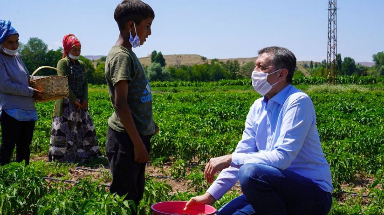 Milli Eğitim Bakanı Selçuk geçtiğimiz pazar günü mevsimlik işçilerin çocuklarının bulunduğu bir tarlaya gitti. Selçuk, çocuklara yaz tatili kitabı verdi karşılığında bir salkım domates aldı. O hatırasını sosyal medya Twitter hesabından paylaşan Selçuk'un öğretmen ve müdürlerden de bir ricası vardı.
