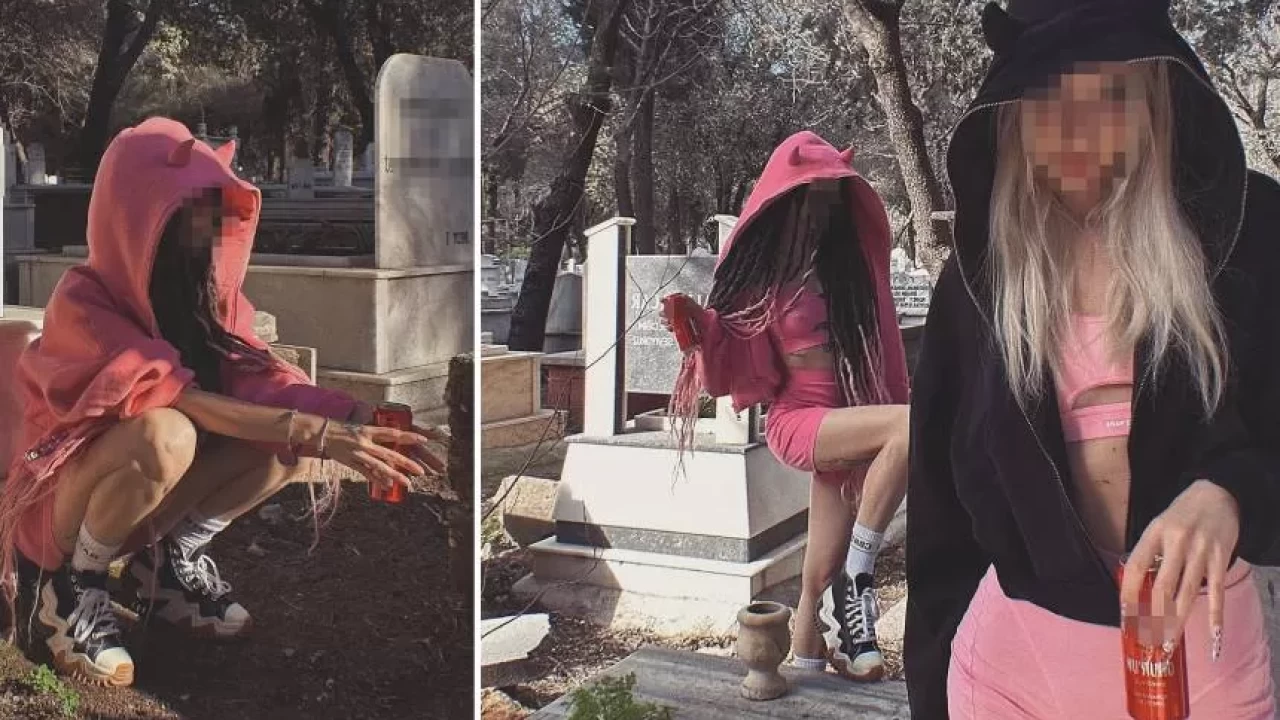 Antalya'da iki genç kızın mezarlıkta çektiği ve sosyal medyada, "İcat edilmeden 15 yıl önce ölen birisiyle kola içmek güzeldi" yorumu ile paylaştığı görüntüler tepkiye neden oldu.