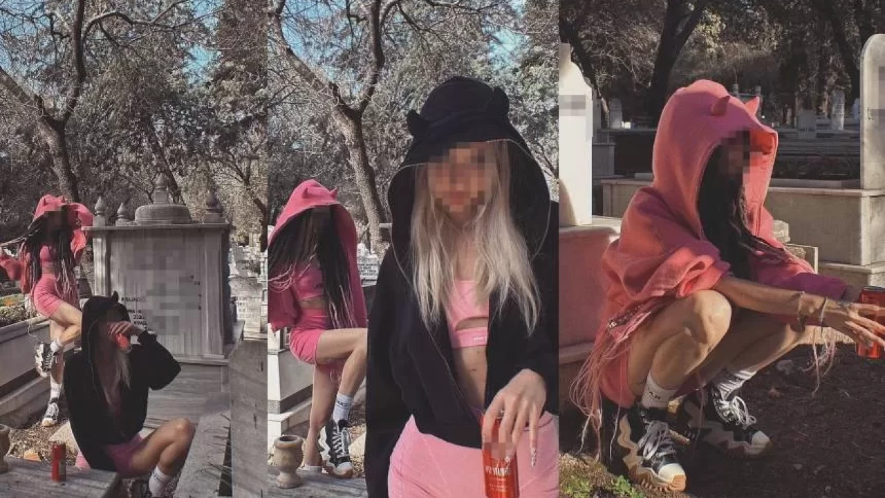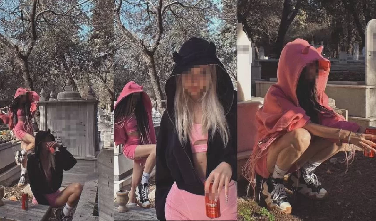 Antalya'nın Muratpaşa ilçesinde geçtiğimiz günlerde yaşanan olayda yabancı uyruklu iki genç kız, şehir merkezindeki bir mezarlıkta bulunan mezar taşlarının üzerinde iskambil oynayarak kola içti. Bu anları fotoğraf ve video çekerek kayda alan 2 genç kız o görüntüleri, "İcat edilmeden 15 yıl önce ölen birisiyle kola içmek güzeldi" yorumu ile sosyal medya hesaplarından paylaştı. Paylaşımın ardından videoyu nasıl çektiklerini anlatan ikinci bir videoyu da paylaşan ve normal kıyafetle girdikleri mezarlıkta üzerlerindeki kıyafetleri değiştiklerini de gösteren görüntülerinin diğer sosyal medya hesaplarından da yayılmasının ardından genç kızların paylaşımı büyük tepki aldı.