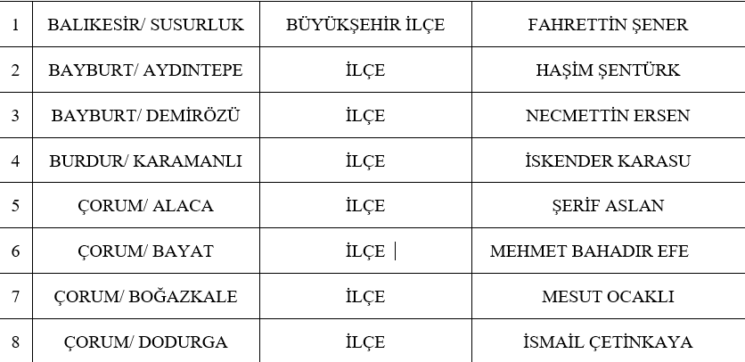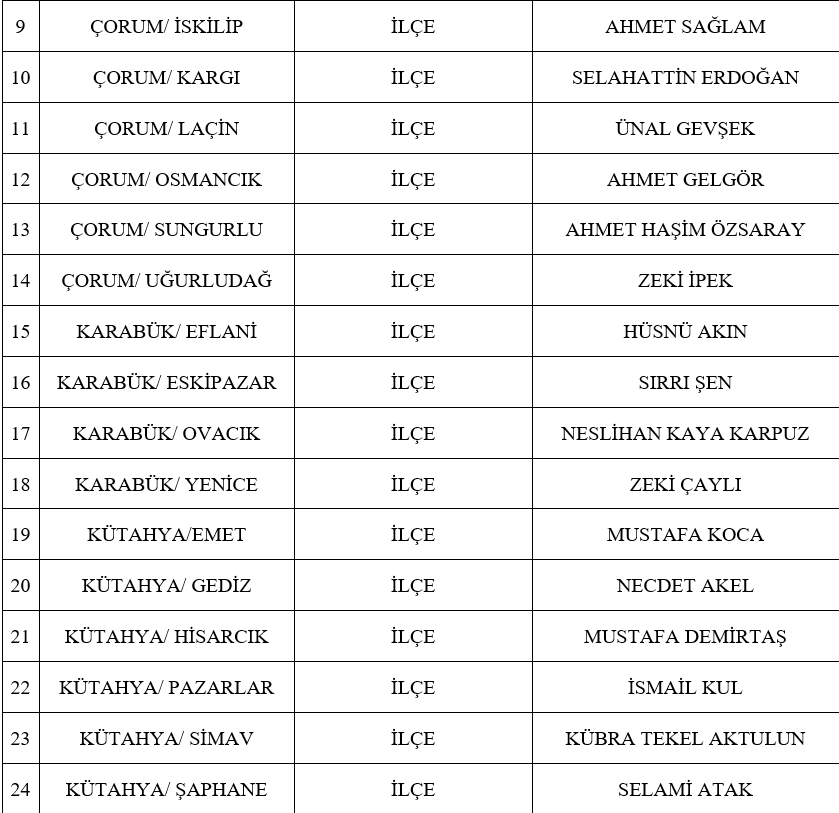 "Partimizin yetkili kurullarının yapmış olduğu değerlendirme ve Genel Başkanımız Sayın Devlet BAHÇELİ’nin onayları sonucunda 31 Mart 2024 Mahalli İdareler Seçimlerinde 5. etap olarak adaylıkları kesinleşen 1 Büyükşehir İlçe, 54 İlçe Belediye Başkan Adayımız olmak üzere toplam 55 adayımızın isim listesi aşağıdadır."
