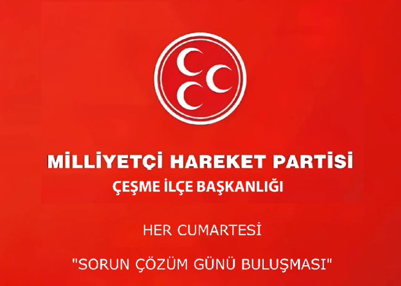 MHP Çeşme İlçe Başkanlığı olarak; Sizlerin Sorun ve Taleplerini daha hızlı ve etkili bir şekilde çözüme kavuşturmak için ; Her Cumartesi gününü