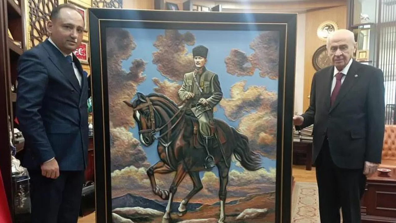 Murat Kaçak tarafından takdim edilen hediye, 1 metre 40 santim boyunda ve 2 metre genişliğinde, tamamen el işçiliği ile hazırlanmış, yağlı boya ile üç boyutlu bir tabloydu. Müzayedelerde dahi büyük ilgi görme değerine sahip bu eser, Genel Başkan Devlet Bahçeli tarafından da büyük beğeniyle karşılandı. Sayın Bahçeli, tabloyu uzun süre inceledikten sonra, eserin ofisinin en güzel yerinde sergilenmesi talimatını verdi.