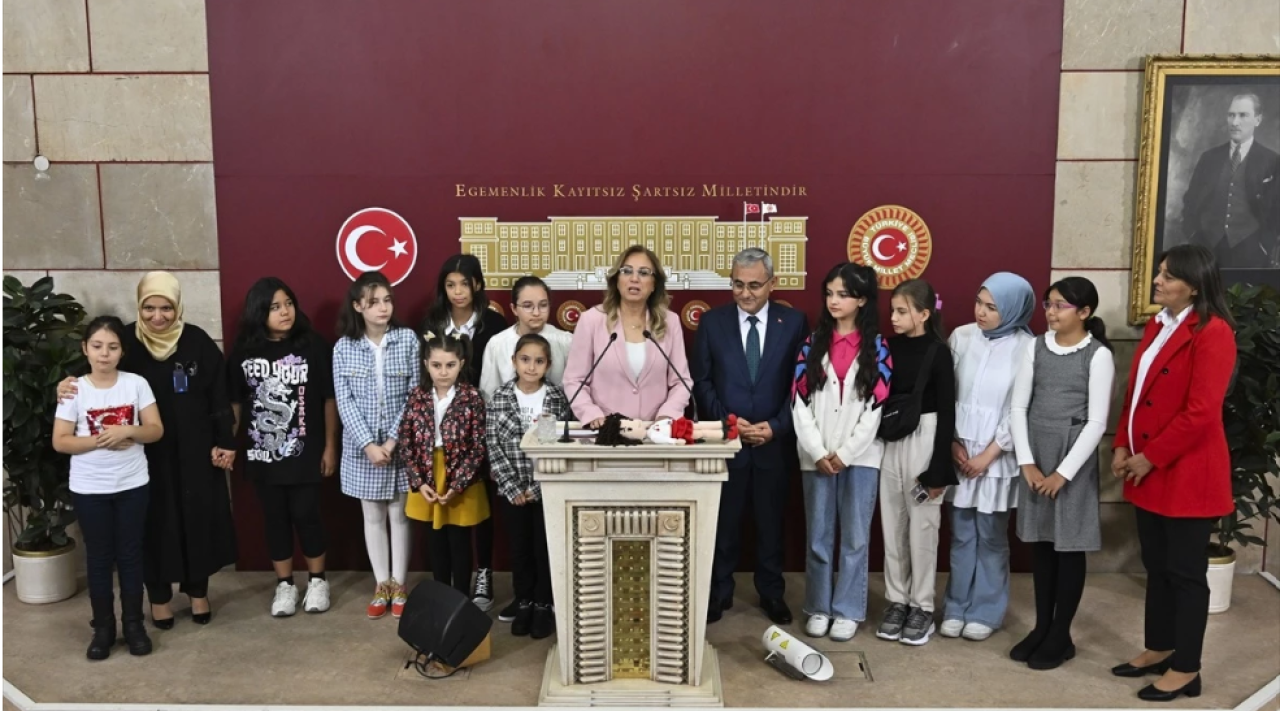 Kılıç, Meclis'te, 11 Ekim Dünya Kız Çocukları Günü dolayısıyla bir grup kız çocuğu ile basın toplantısı düzenledi.