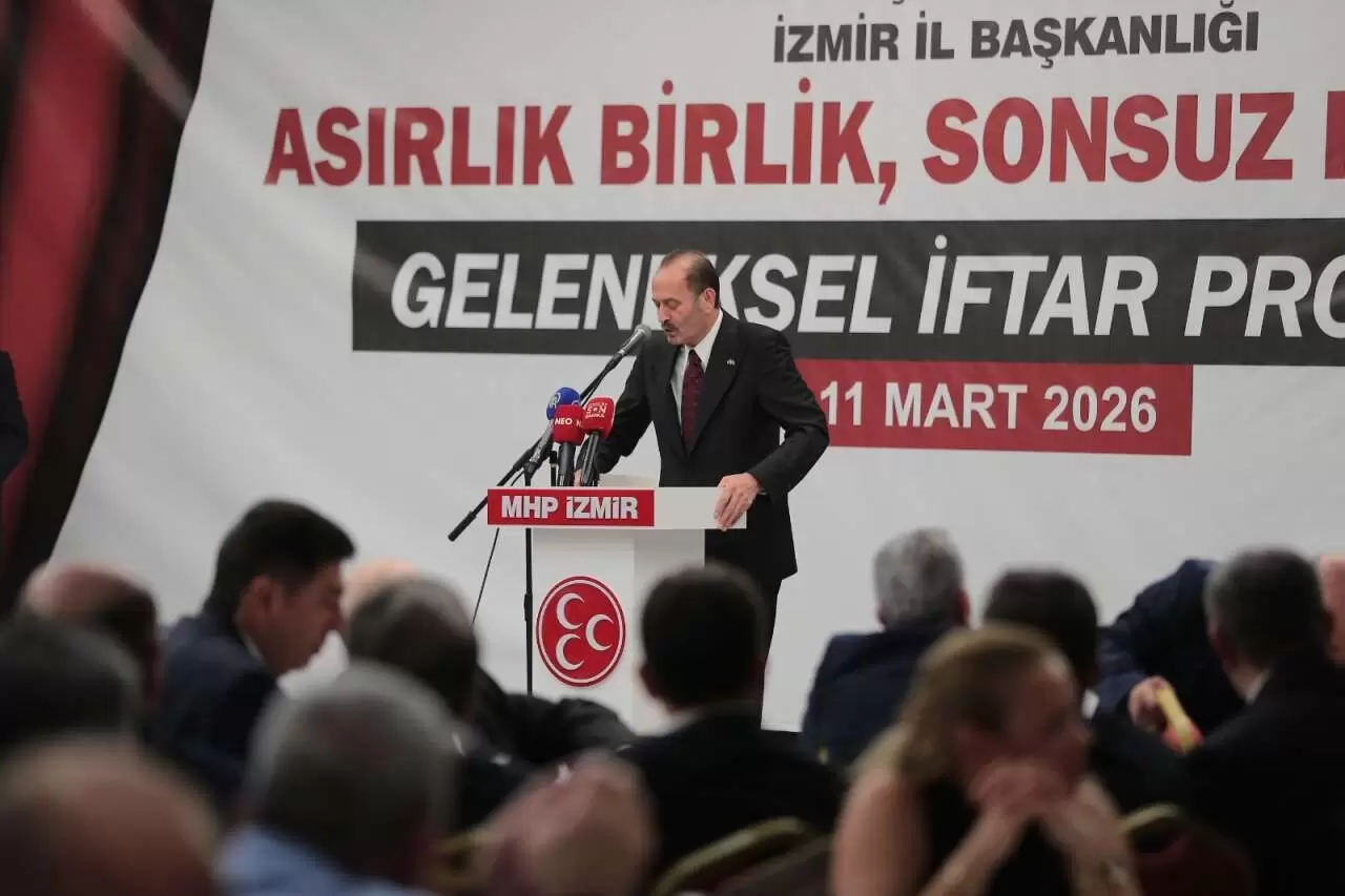 Program’da konuşan AK Parti İzmir İl Başkanı Bilal Saygılı da şunları söyledi: "Bu sofra kardeşlik sofrasıdır. Bu öyle bir kardeşliktir ki Anadolu ve Mezopotamya’nın bin yıllık bölünmezlik mührüdür. Bu mühür iki büyük devlet adamının şahsı manevisinde tarihimize vurulur. Biri Cumhurbaşkanımız Sayın Recep Tayyip Erdoğan’dır, diğeri Türkmen Beyi, MHP Genel Başkanı Sayın Devlet Bahçeli’dir. Selçuklu’nun çift başlı kartalı işte bu iradedir.