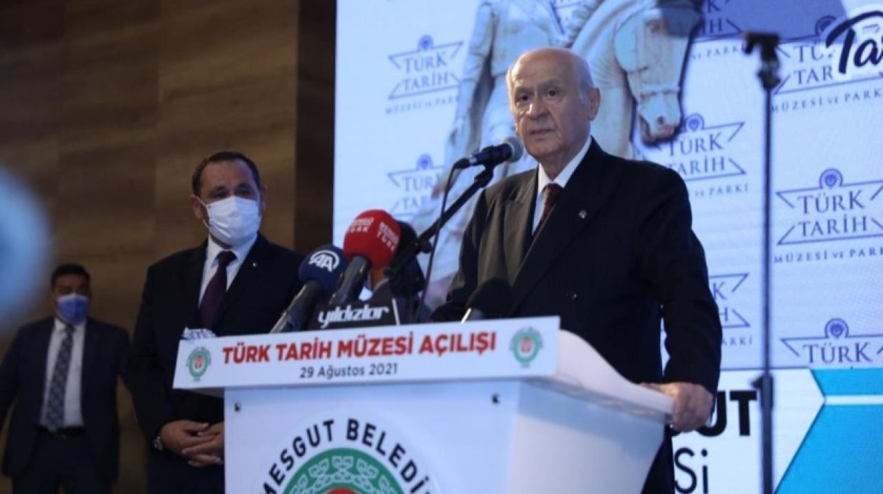 Türk Tarih Müzesi ve Parkı'nın, mekan ve zaman olarak Türk dünyasını kavradığını belirten Bahçeli, "Burada, Türk tarihinin bir özeti vardır. Burada hakim olan, geçmişin anı ve hatıraları, aynı zamanda istikbalin irade ve istikametine uzanan köprübaşlarıdır." ifadesini kullandı.